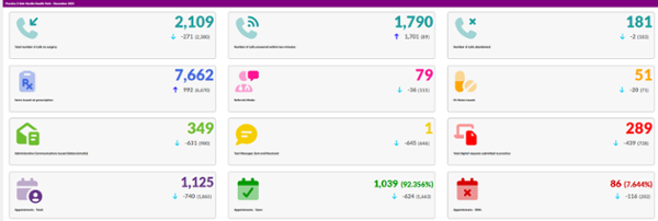 The General Medical Services Contract in Wales requires GP practices to report on specific areas of practice activity on a monthly basis for submission to Health Boards and the Welsh Government. Practices are expected to share this information with our patients using an infographic which the NHS Wales Digital Team collates for us.